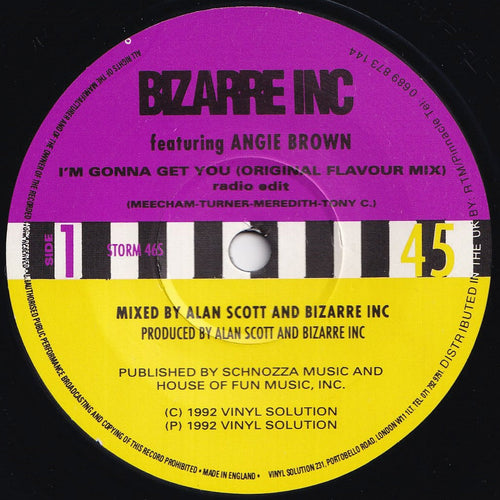 Bizarre Inc, Angie Brown - I'm Gonna Get You (Original Flavour Mix Radio Edit) / (Tee's Freeze Mix Edit) (7 inch Record / Used)