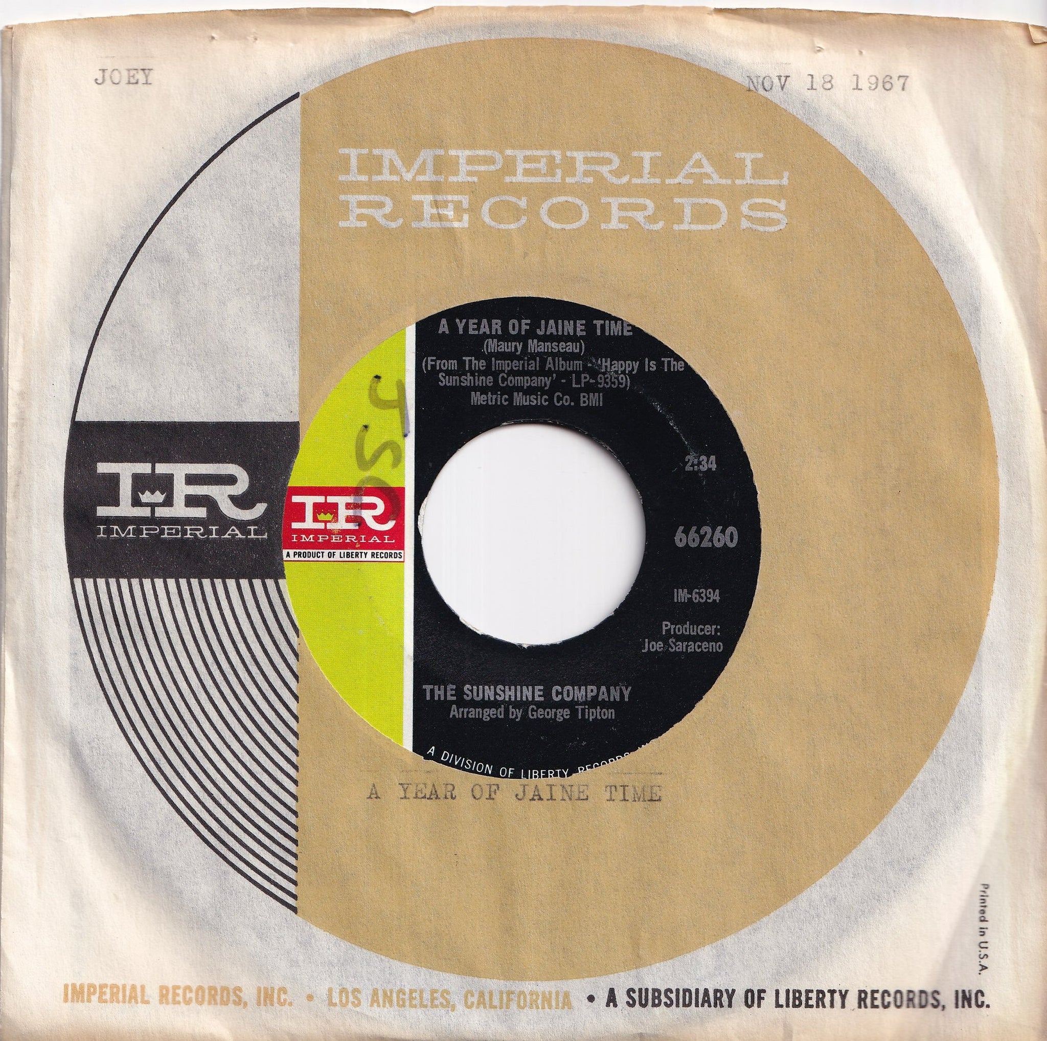 ●Record Grading: EX- (両面のラベルに若干のダメージと書き込み。多少の傷はあるが、おおむね良好。カンパニースリーブ付き。Slight damage and writing on both side labels. But good shape. With company sleeve.)