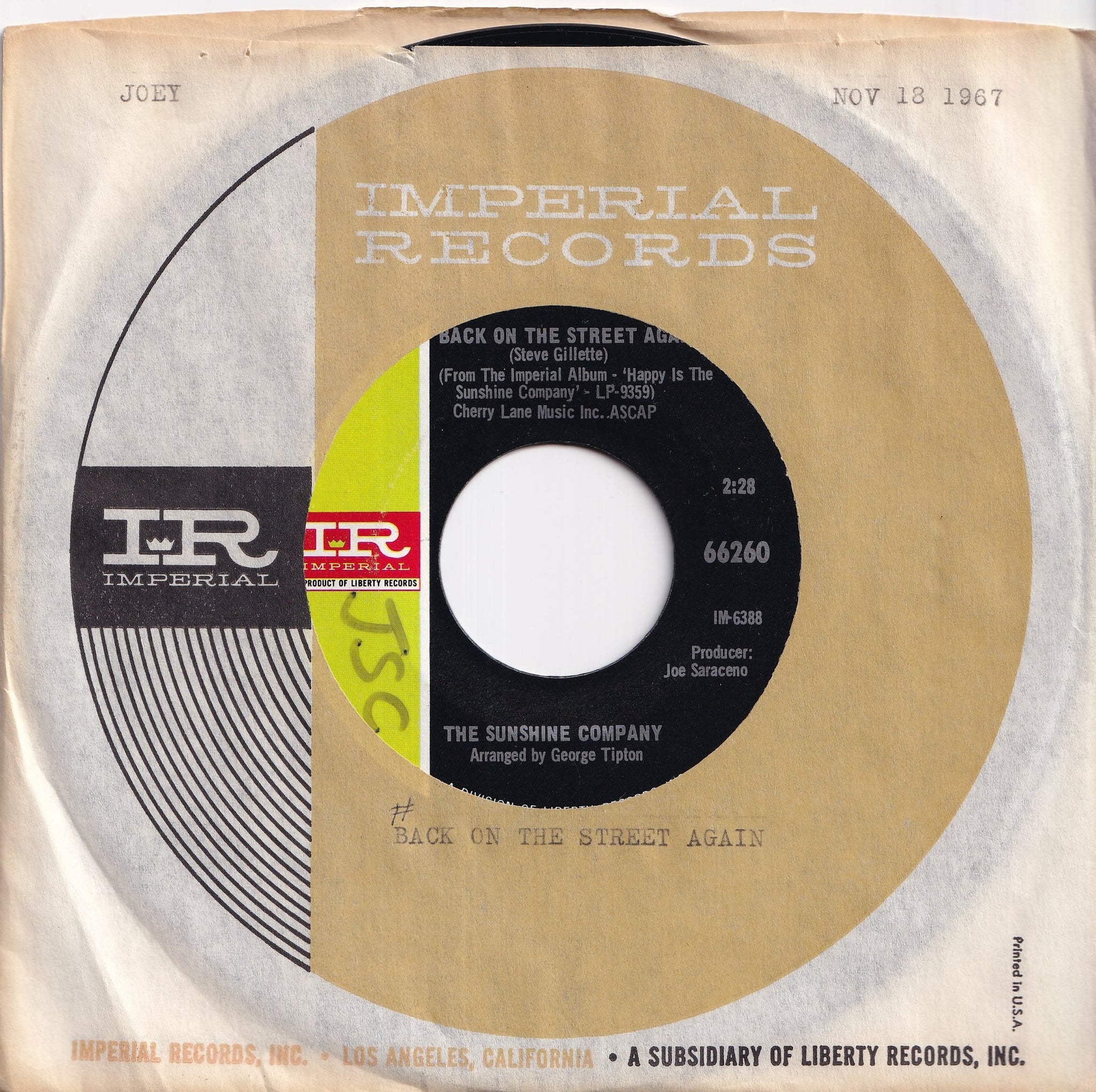 Sunshine Company - Back On The Street Again / A Year Of Jaine Time (7 inch Record / Used)