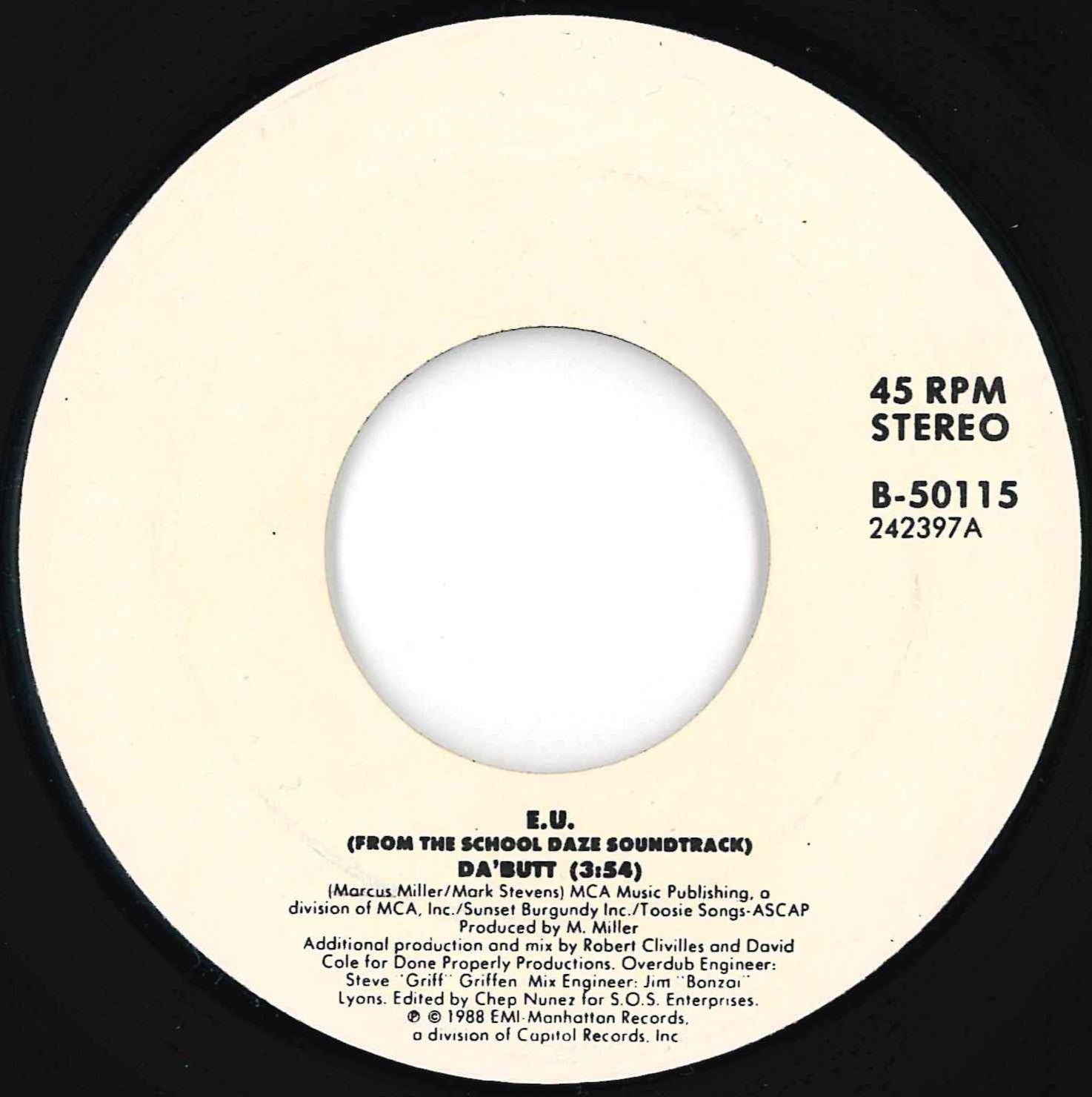 E.U. - Da'Butt / (Dub 1) (7 inch Record / Used)