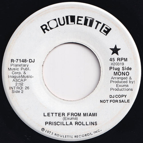 Priscilla Rollins - Letter From Miami (Mono) / (Stereo) (7 inch Record / Used)