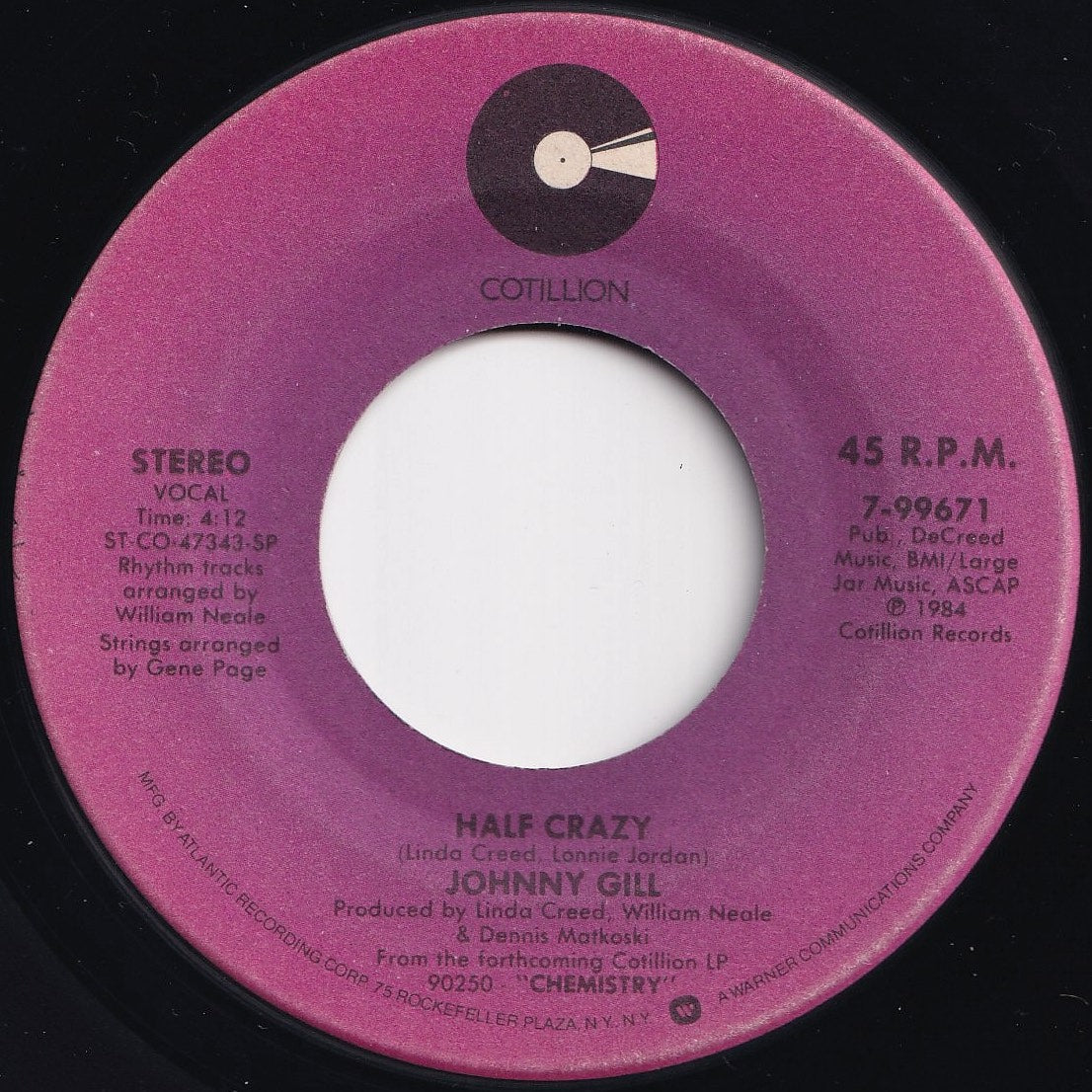 Johnny Gill - Half Crazy / Chemistry (7 inch Record / Used)