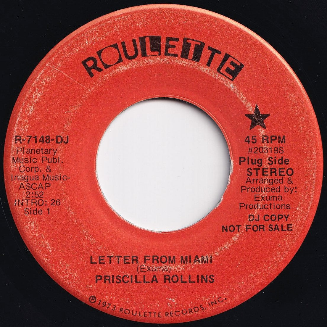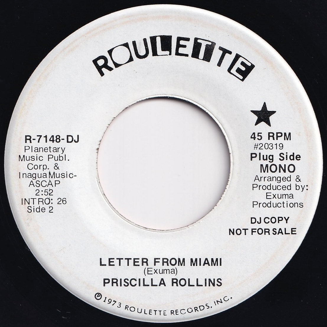 Priscilla Rollins - Letter From Miami (Mono) / (Stereo) (7 inch Record / Used)